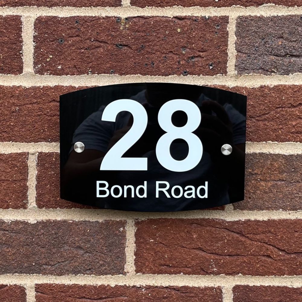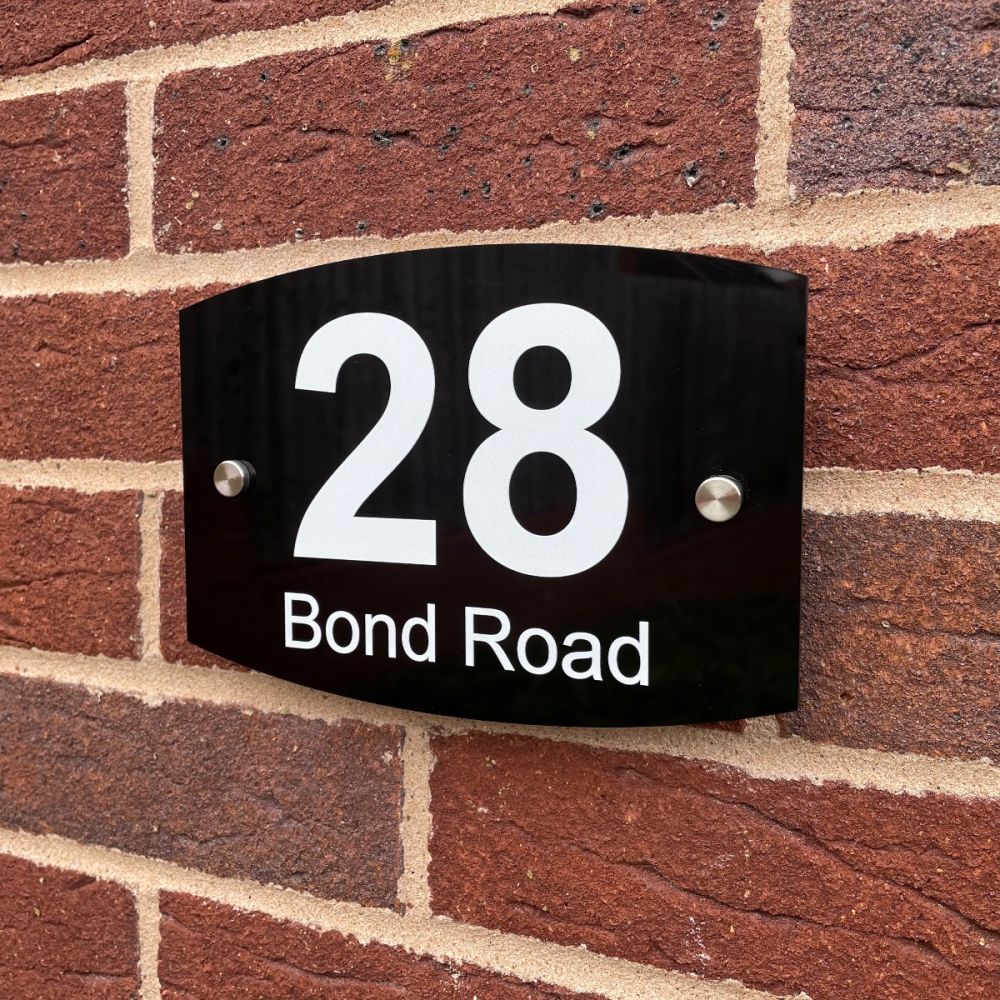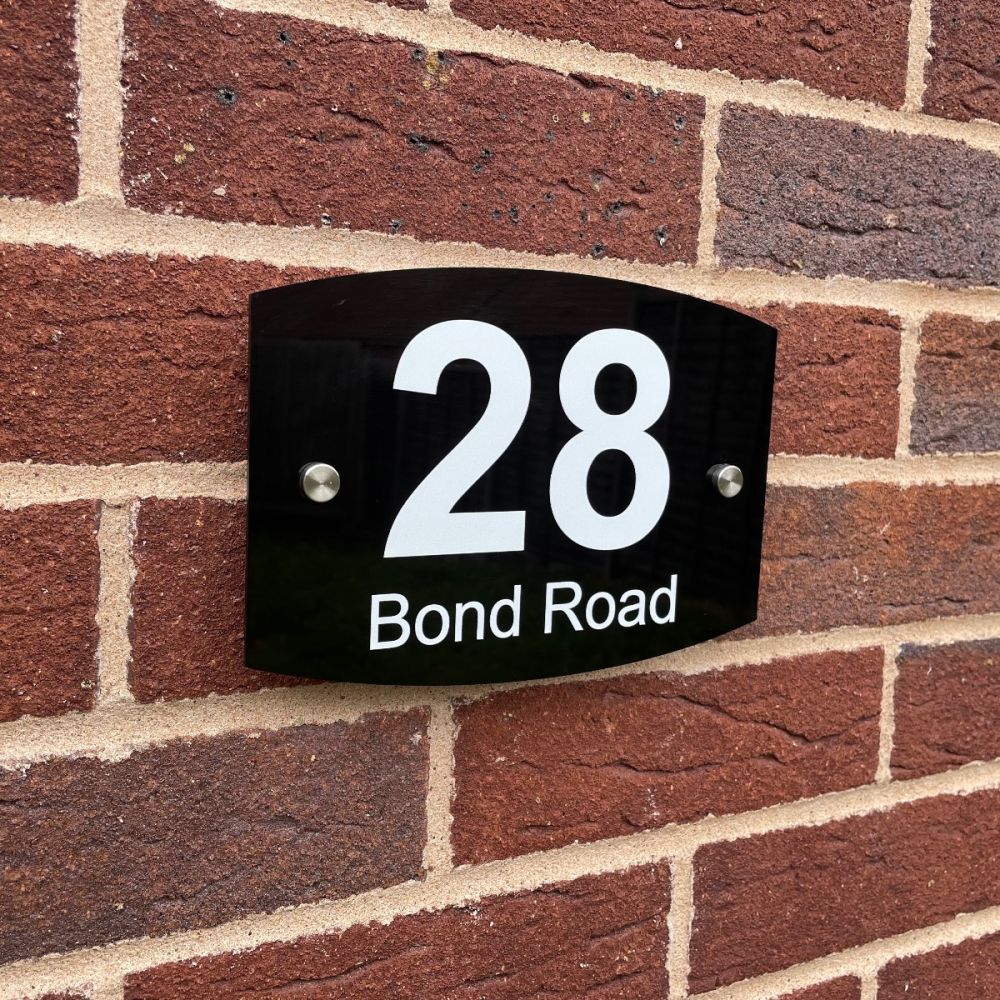 Personalised Black Acrylic Door Sign - Round Curve Shape (AR_FT)