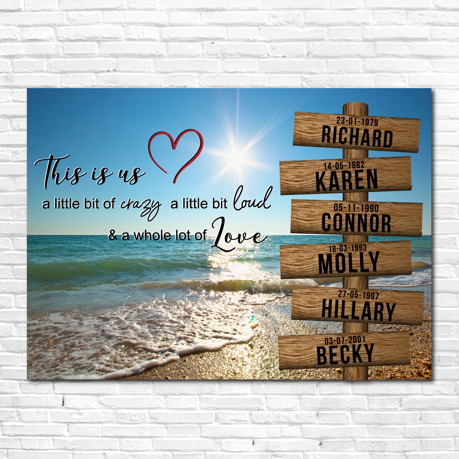 Our trending beautiful personalised street sign intersection canvas can be personalised up to 6 names - please see image slides for examples.