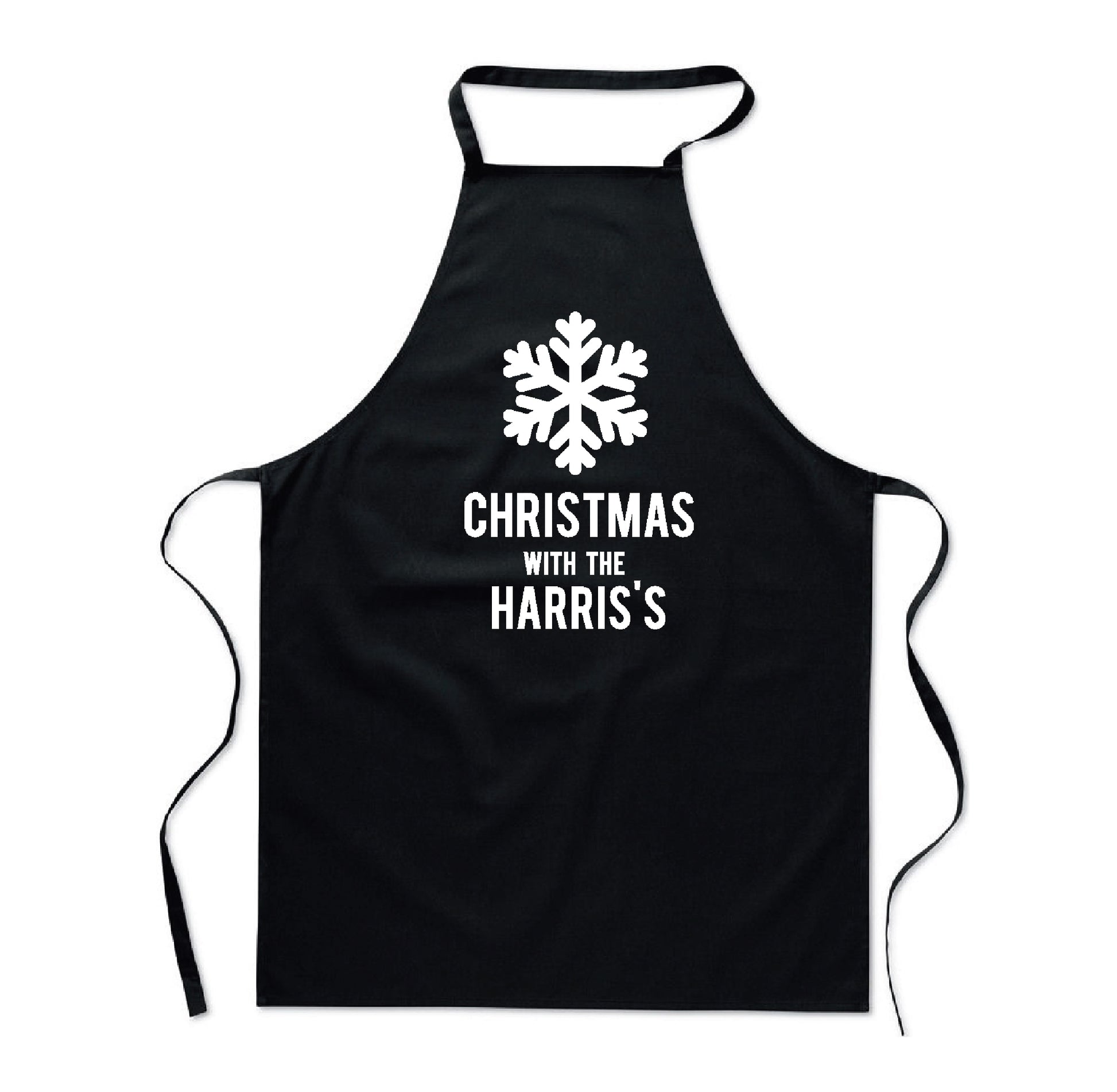Personalised Black Christmas Name Apron - Snowflake